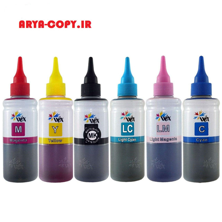 جوهر ۱۰۰ میلی لیتر وکس برای پرینترهای اپسون رنگ : آبی، آبی روشن، قرمز، قرمز روشن ، مشکی و زرد وزن : ۱۰۰ میلی لیتر مخصوص تمام پرینترهای جوهر افشان اپسون