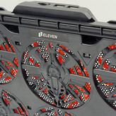 کول پد ELEVEN مدل N706 یکی از بهترین کول پد های سری گیمینگ مناسب لب تاب های گیمینگ هستش. طراحی فوق العاده N706 که توسط شرکت ELEVEN طراحی گردیده و با قدرت خنک کنندگی 6 فن 4.5 اینچی با دور 1100±10%RPM و رنگ آمیزی فوق العاده زیبا بهمراه LED های قرمز که در داخل فن جای گرفته و همچنین پایه قابلیت تنظیم ارتفاع، باعث شده تا یکی از بهترین و کاربردی ترین کول پد های مخصوص لب تاب های گیمینگ باشد. جنس بنده از پلاستیک با کیفیت ABS و فلز می باشد، فلزی بودن صفحه رویی کولپد باعث تبادل بهتر حرارت می شود. این کول پد دارای یک دکمه اسکرولی جهت کم و زیاد کردن سرعت فن ها و همچنین خاموش و روشن کردن تعداد فن ها می باشد و پایه قابل تنظیم در زیر کول پد به صورت چند حالته و همچنین دو پایه روی کول پد جهت ثابت نگه دارنده لپ تاپ در حالت شیبدار میباشد . این کول پد مناسب لب تاب های گیمینگ که حرارت زیادی تولید میکنند هستش و به راحتی میتوانند تبادل حرارت را ایجاد کنند.