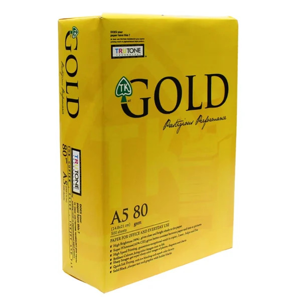 کاغذ (گلد )که معرف حضور است در سایز A۵ می باشد. با کاربری چاپ معمولی است.وزن این کاغذ ۸۰گرمی می باشد.ابعاد آن ۱۴۸x۲۱۰ است.